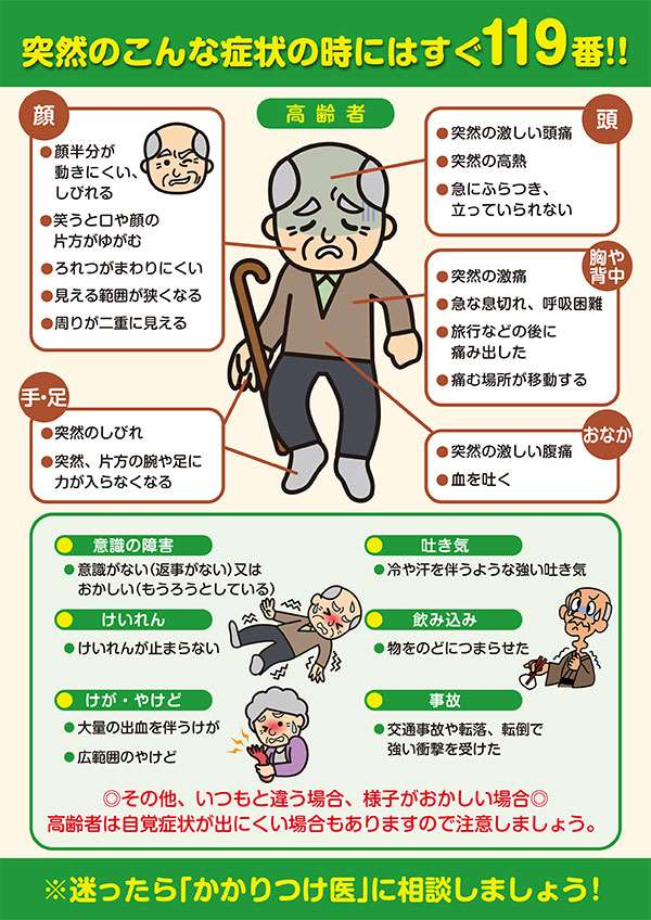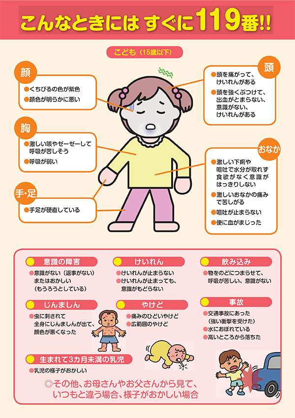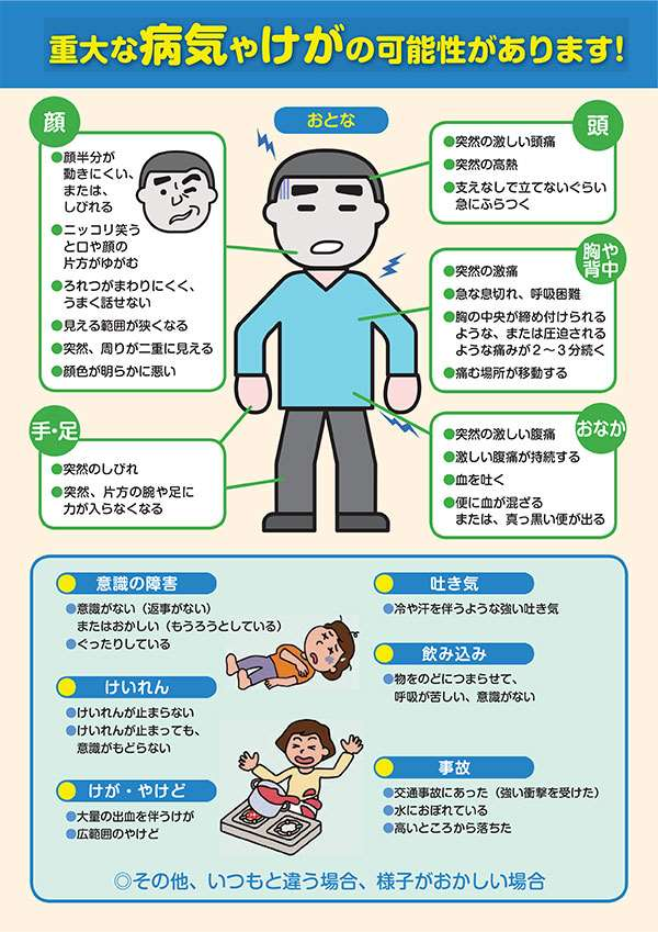 緊急度の高い症状を紹介します。このような症状があった場合は迷わずに救急車を要請してください。