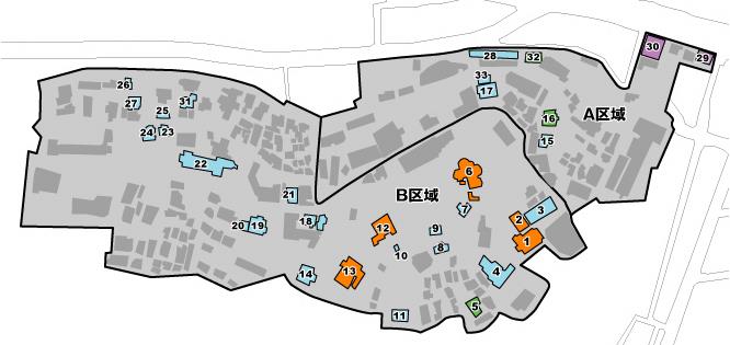 地区の中心から南側は、現在でも静かな住宅地で、明治時代初期から中期にかけての洋風住宅建築が比較的良好に残っている。