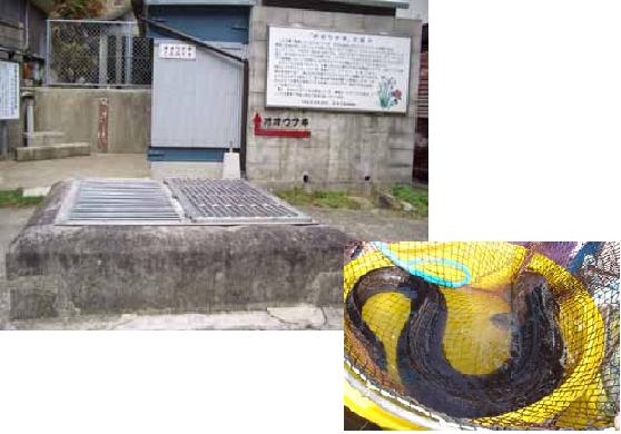 オオウナギはウナギ科に属し、熱帯性の魚である。沖縄から茨城県にいたる太平洋沿岸に分布する。体長2メートル以上にもなり、灰黄褐色の地に黒褐色の不定形斑紋がある。県内では五島列島、西彼杵半島の川でまれに発見され、樺島の共同井戸には古くから住みついていた。井戸は1.6メートル四方、深さ3メートル余の石積みで、井戸に沿い海に注ぐ細流には、かつて初夏、ウナギ仔魚が谷川をまっ黒にするほど遡っていた。オオウナギの仔魚も、こうして井戸の石積みの間から入ったものであろう。