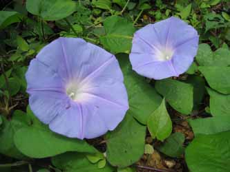 ノアサガオはヒルガオ科の常緑多年性草本である。花の形はアサガオの並形のものと同じで、青紫色で美しい。直径は約7センチメートルを測る。つるは丈夫で、下の方は直径1センチメートルになり、多少木化することもある。葉は厚くて心円形、濃緑色である。南方系の植物で、オーストラリア、台湾、琉球から北上し、西海市大島町が北限である。指定地は高さ50メートルの祗園(ぎおん)山の頂上附近から下、波打ち際にかけて分布している。