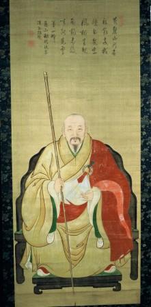 唐僧慈岳(じがく)は 明暦元年(1655)木庵(もくあん)に随侍(ずいじ)して福済寺に入り寛文12年(1672)41歳のとき福済寺第二代住持(じゅうじ)となり、元禄2年(1689)58歳で示寂(じじゃく)した。賛者の東瀾は元禄元年(1688)慈岳より嗣法(しほう)したとき49歳、元禄2年 50歳慈岳の示寂に伴い第三代の住持となった。元禄8年(1695)唐僧喝浪を第四代住持として霊鷲庵(りょうじゅあん)に隠居した。このころ東瀾の大きな法像を造ったので、その師の慈岳も同じ位の法像を作らねばなるまいと思って作ったと想像することはできる。画者は落款(らっかん)がないので喜多元規(きたげんき)と断定することはできないが、元規風の作品ということはできよう。