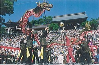 昔、長崎港の一番奥深い所の船着き場が大黒町で、中国船の出入港で賑わっていた。そこで、この地が中国船を繋ぐ入江であった故事にちなんで、明治38年に長崎駅が現在地に完成したとき、その5年後の明治43年に唐人船を始めて奉納した。