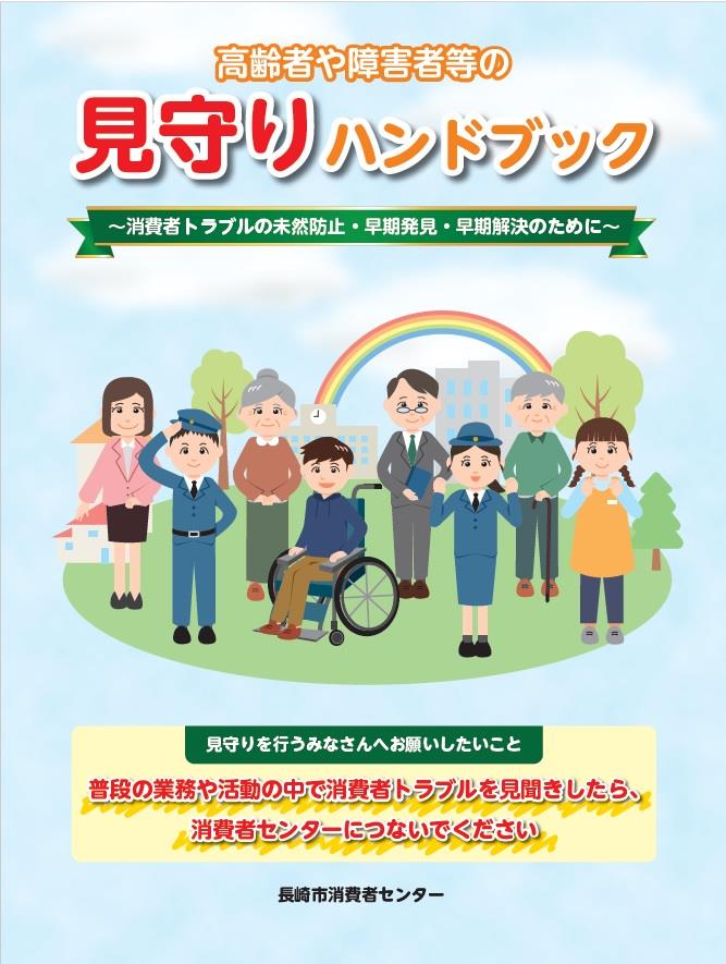 高齢者や障害者等の見守りを行っている方へ向けたハンドブックです。 配慮を要する方々の見守りにおける「気づき」のポイントや、消費者センターへつなぐ流れ、よくある消費者トラブルの事例及び対応例などを記載しておりますので、ご活用いただけますと幸いです。