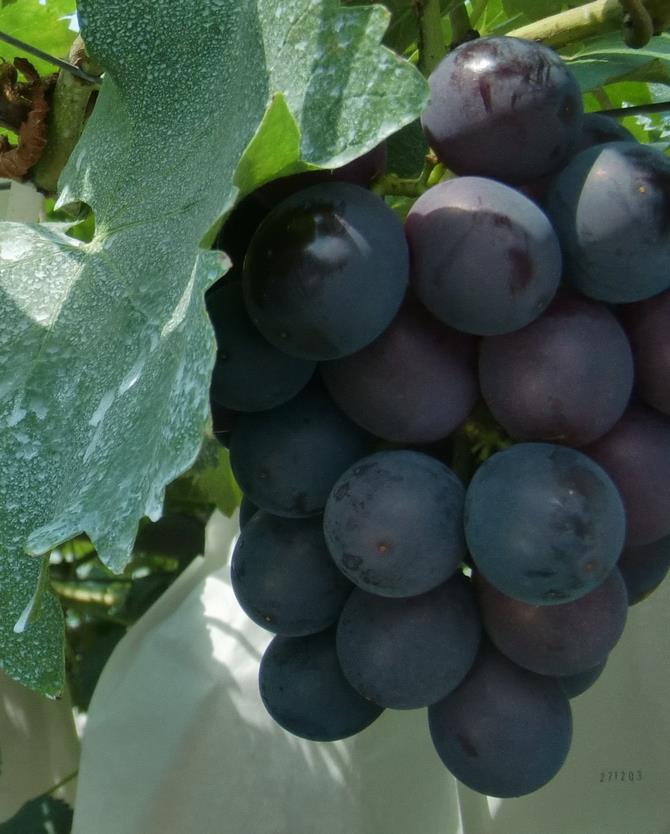 ぶどうは枝に近いほうが甘く、果皮についた「ブルーム」という白っぽい粉がまんべんなくついているものが、鮮度が良いとされています。