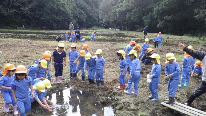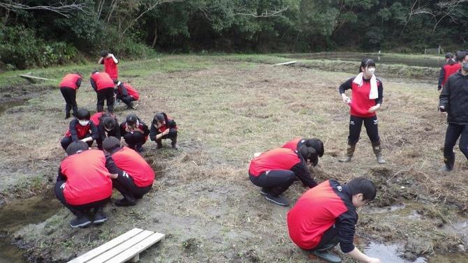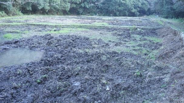 長崎市相川町にある当休耕田は、長崎市レッドデータブックに掲載されているニホンアカガエル、カスミサンショウウオ、ヘイケボタルなどの市内最大の生息地でしたが、平成8年頃に耕作がやめられてからは急速に乾地化が進み、それら湿地性の希少生物が絶滅の危機に瀕することとなりました。そのため、平成16年度から、地元自治会の協力を得て自然再生事業に着手し、現在では、ヘイケボタルの飛翔をはじめ、冬場の12月から春先の3月にかけて、ニホンアカガエル、カスミサンショウウオの成体と多くの卵塊が毎年、確認できる状態となっています。当休耕田は、人と自然とが触れ合える、市内でも貴重な生物生息環境(ビオトープ)となっています。