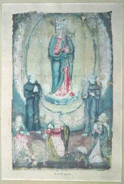 本資料は2009年フランスで確認され、2014年にカトリック長崎大司教区が譲り受けたものである。構図は王冠をかぶり三日月を足下にする聖母マリアを中心としており、マリアは原罪を受けていない存在だったとする「無原罪の御宿り(むげんざいのおんやどり)」を主題とする歴史資料である。
