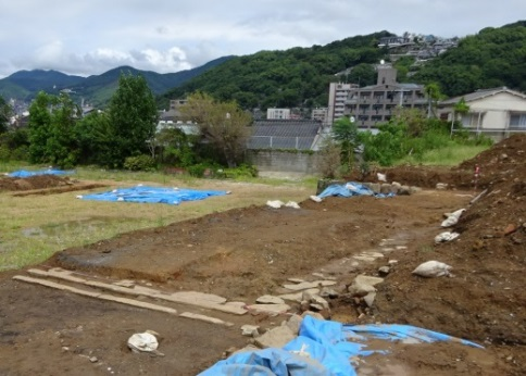 長崎(小島)養生所等があった場所は、現在の仁田佐古小学校敷地(旧佐古小学校敷地)であるため、新校舎を建設する準備作業として、これまで土の中に埋まっていた遺構の発掘調査を行いました。