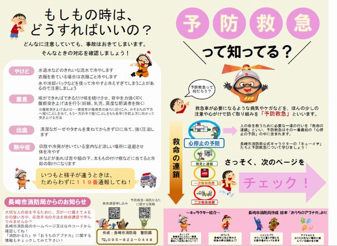 「予防救急」リーフレットは消防署で開催している救急講習などで配布しています。(なくなり次第終了です。)