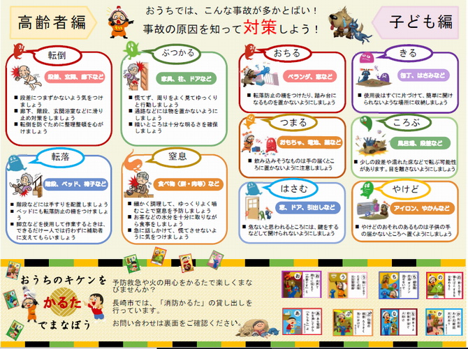 消防局では、事故のリスクが高い子どもや高齢者を対象とした絵本、かるた、紙芝居に続き「予防救急」リーフレットを作成しました。