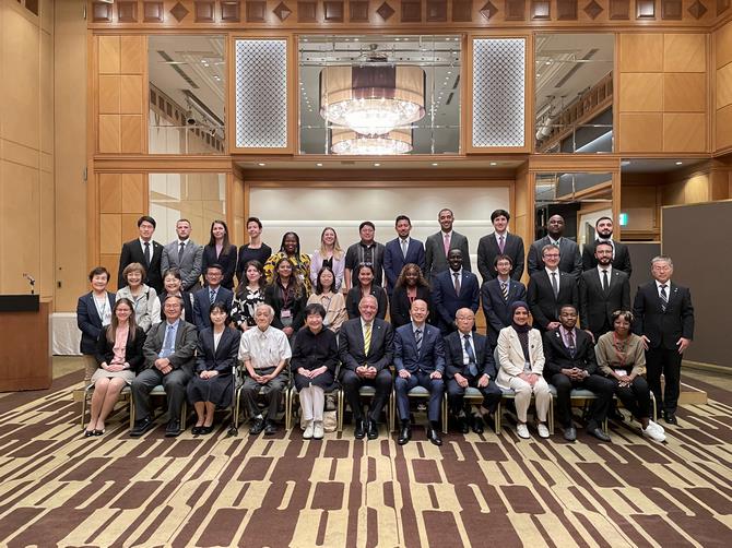 令和6年度国連軍縮フェローシップでは、25か国の若手外交官など25名、と国連随行職員2名の計27名が参加しました。長崎原爆資料館などの視察、被爆者などとの懇談、築城昭平さんによる被爆体験講話の聴講、そして平和活動に取組む長崎大学核兵器廃絶研究センター(RECNA)中村桂子准教授と大学生との意見交換などを行い、長崎の被爆の実相に触れるとともに、核兵器廃絶に向けた長崎での取り組みについて理解を深めていただきました。