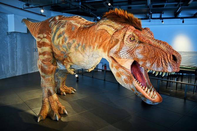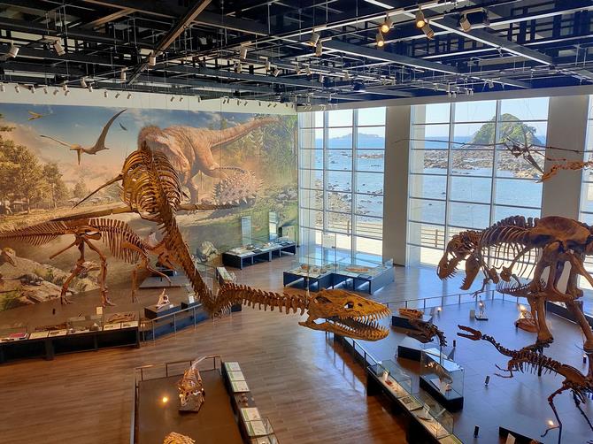 世界最大級のティラノサウルスの全身骨格標本レプリカをはじめ、長崎で発見された貴重な実物化石など数多くの標本を展示しています。