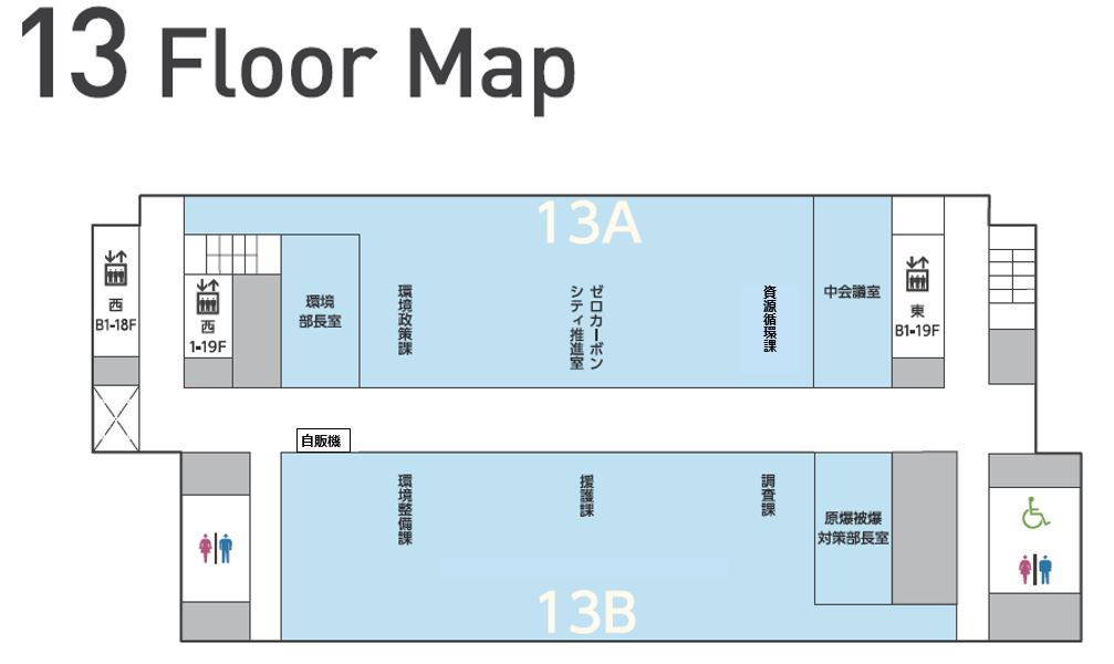 13階 | 環境部 | 環境部長室 環境政策課 ゼロカーボンシティ推進室 資源循環課 環境整備課 | 自販機 |