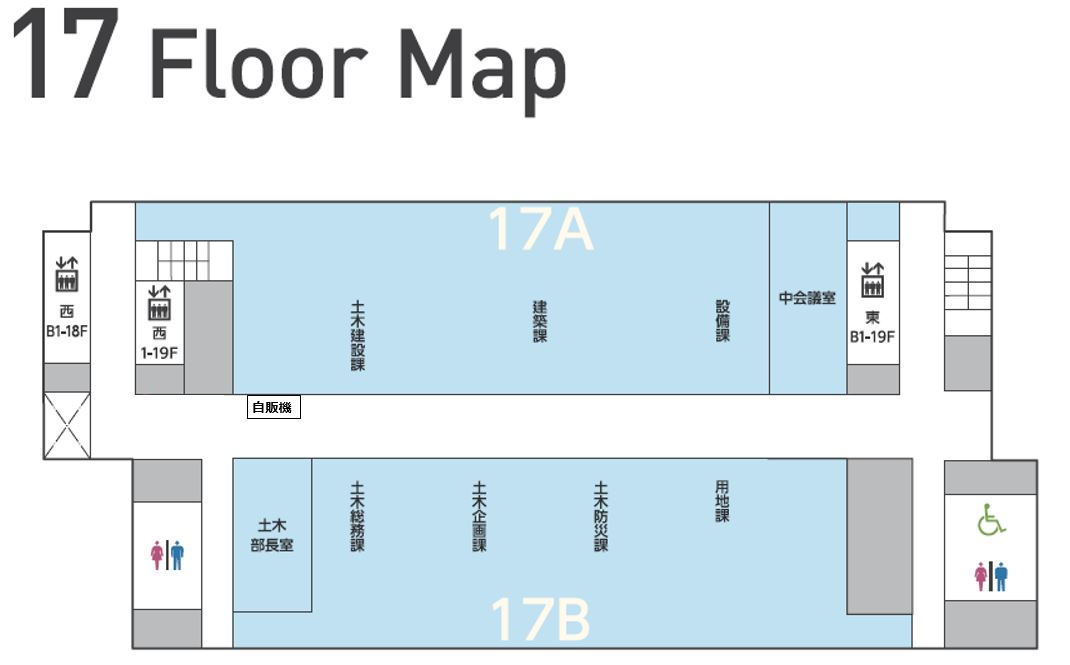 17階 | 建築部 | 建築課 設備課 | 自販機 |