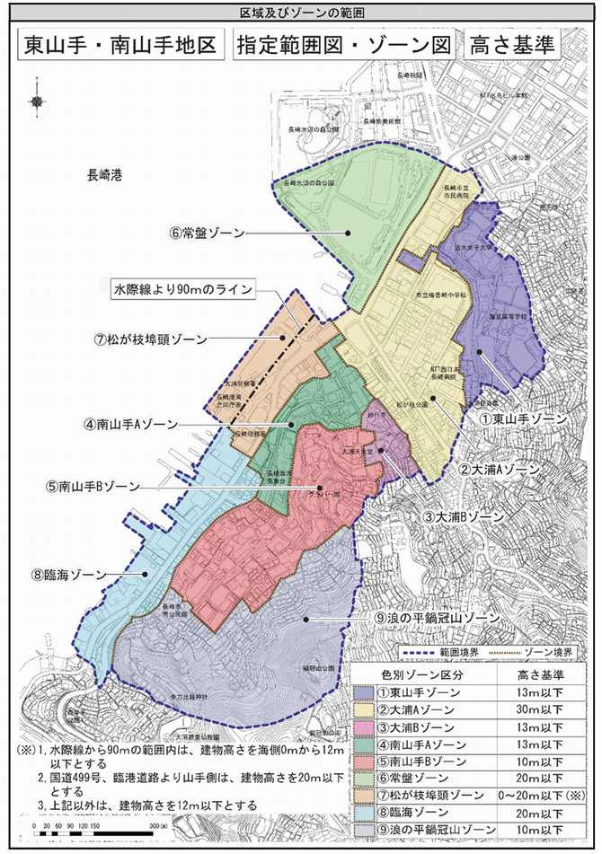 長崎市景観計画における景観形成重点地区「東山手・南山手地区」を対象区域とします。