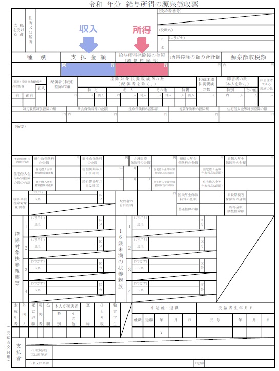 会社等に勤務されているかたで、給与等を受け取られている場合は、手取り金額ではなく、源泉徴収税額や社会保険料などが天引きされる前の「支払金額」が「収入金額」となります。