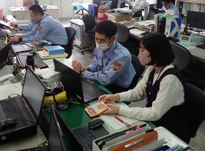 「ズボンタイプで感じていた腹部の圧迫感がなく安心して勤務ができる。周囲の職員の方も、さまざまな配慮やお声かけしていただきうれしく思っています。」