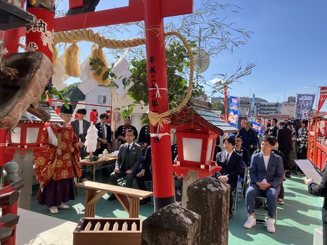 この境内に、必勝祈願フォトスポットボード、おみくじ掛けが設置され、令和6年11月6日(水曜日)にお披露目式が開催されました。