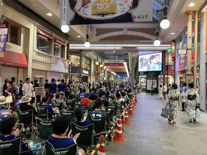 令和6年8月17日(土曜日)にベルナード観光通りにて、サッカーJ2リーグ「vsモンテディオ山形戦(アウェイ戦)」のパブリックビューイングを開催し、約400名の来場がありました。会場内には長崎県立大学によるPepperくんプログラミング教室、浜町の商店街等による飲食店のブース出店等も行われ、大いににぎわいました。