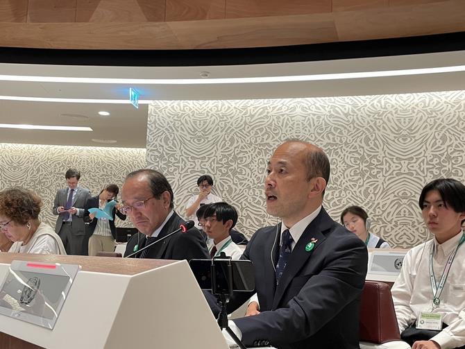 鈴木市長は、松井広島市長とともに平和首長会議の代表として行ったスピーチで、核保有国をはじめとするNPT締約国を前に、世界はより危険な状態へ突き進んでいることへの危機感を表したうえで、核兵器は絶対に使ってはならないこと、そして、人類が核兵器のリスクから免れるための唯一の手段は「廃絶」しかないことを訴えました。