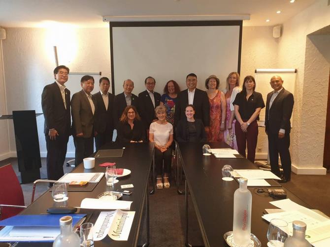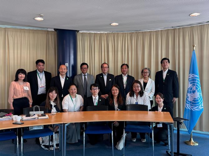 市川日本政府軍縮大使(左)及び海部在ウィーン国際機関日本政府代表部大使(右から2人目)(7月25日)