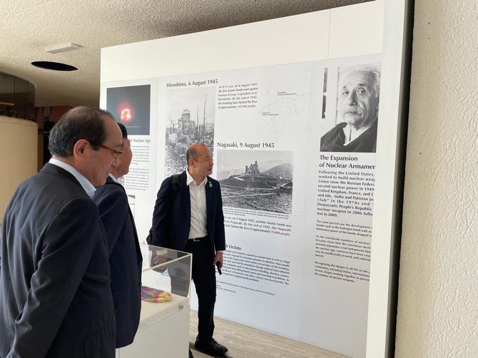 市川軍縮会議日本政府常駐代表は、現在の国際安全保障が非常に厳しい情勢にあることを強調され、今後は、少しでも軍縮を進展させることに注力していかなければならないとの見解を示されるとともに、面会に同席した被爆地の若者に対し、被爆の実相に関する映像や資料を自分の目で見て心で感じ、それを自分の言葉でアウトプットし、今後の活動の中で、多くの人に伝えていってほしいと激励されました。