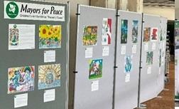 会期中、会議出席者や国連関係者に被爆の実相や核兵器の非人道性、平和文化の振興に向けた平和首長会議の取組について理解を深めてもらい、核兵器のない平和な世界の実現に向けた気運を醸成するために、平和首長会議原爆平和展(バナー展示)と子どもたちによる“平和なまち”絵画展を開催した。7月22日には、高村外務大臣政務官が展示を視察され、松井会長及び鈴木副会長から展示内容の説明を行いました。