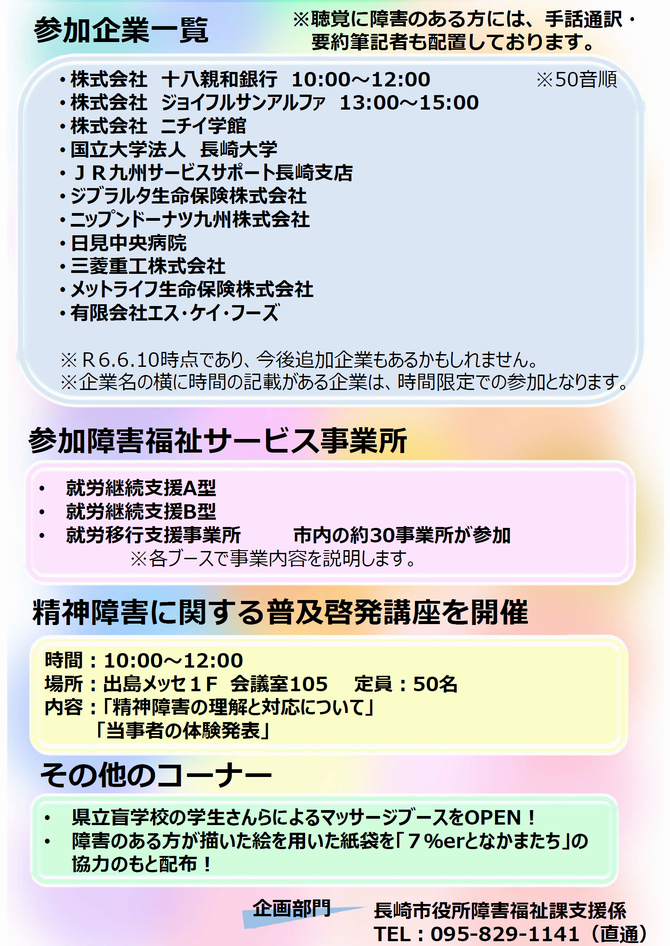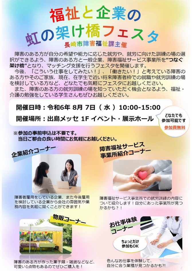 障害福祉課では、障害者雇用促進を目的とした初のフェスタを令和6年8月7日に開催いたしました。