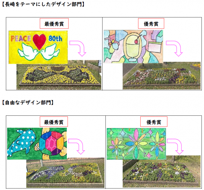 各部門の最優秀賞と優秀賞、4作品については、長崎市営陸上競技場花壇(松山町)に植栽しています。ぜひお立ち寄りください🌺