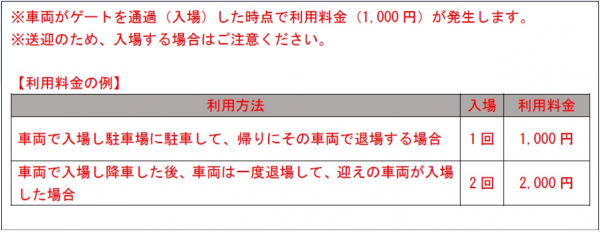 (変更後)1回24時間につき 1,000円(駐車時間20分以内の場合無料は廃止)